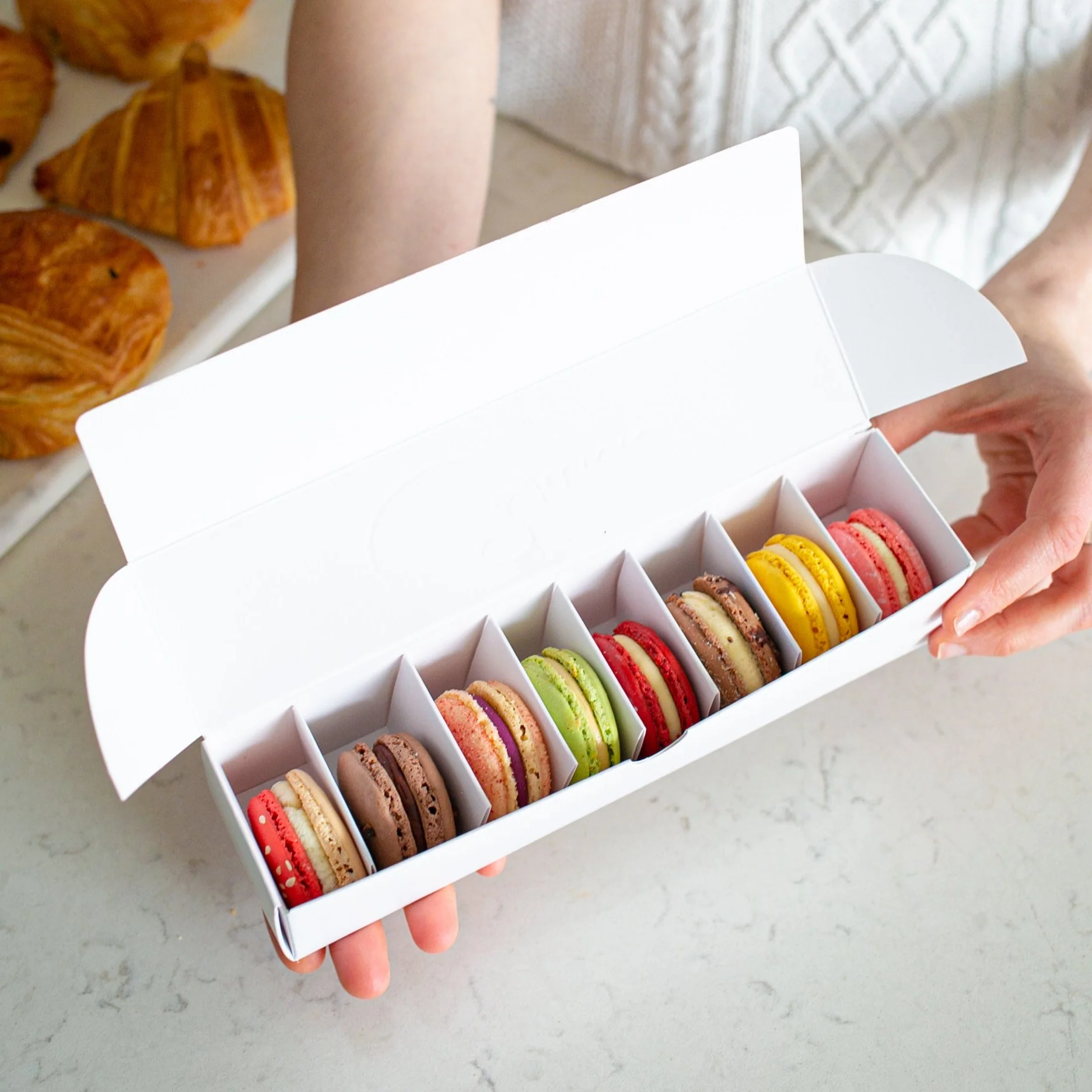 Present your products in style with our Custom Macaron boxes, the perfect combination of convenience and elegance. These boxes are fully customizable in size, color, and finish, making them ideal for retail, gifting, food packaging, or promotional purposes. Designed with a sturdy structure and an easy-to-carry handle, gable boxes ensure your items are safe while looking premium. Personalize your packaging to reflect your brand identity and create a memorable unboxing experience for your customers.