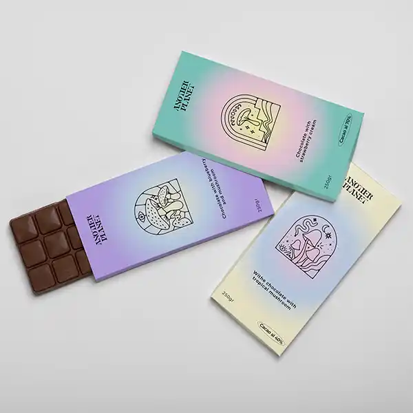 Our Mushroom chocolate bar packaging are designed to deliver a delightful assortment of chocolates to customers each month. Perfect for gifting, corporate packages, or subscription services, these boxes are fully customizable in size, design, color, and finishing. Made from premium, durable, and food-safe materials, they ensure the chocolates arrive safely and elegantly. With branded packaging, each box provides a luxurious and indulgent unboxing experience, leaving a lasting impression on recipients.